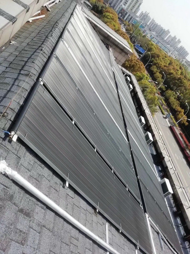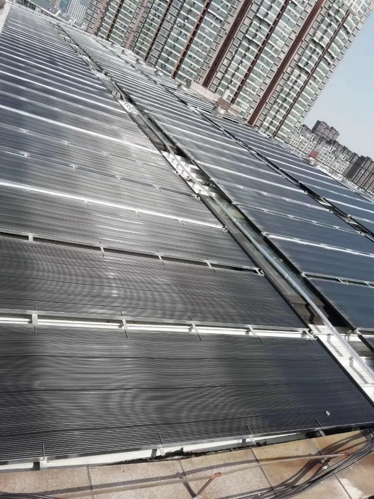 由我司安裝的太陽能加熱系統(tǒng)(游泳池加熱和淋浴系統(tǒng)兩用),已驗(yàn)收并投入使用中。今天測試:現(xiàn)室外氣溫16℃,熱水出水溫度55℃。